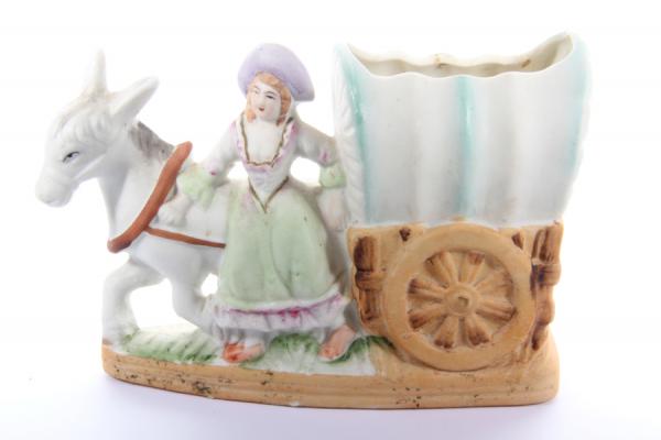 Девушка и ослик с тележкой. Фарфоровая фигурка. Изготовлена в Японии в 1970-х годах