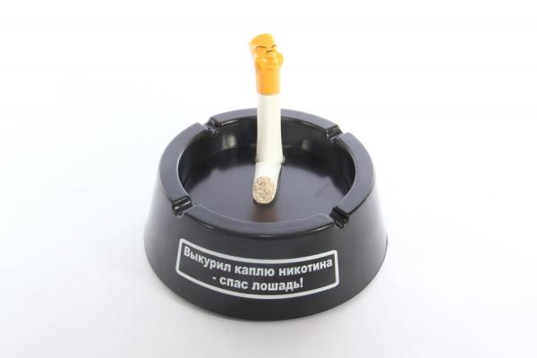 Анимированная пепельница для сигарет =Мечта курильщика=. Предназначена для людей стремящихся бросить курить. Оснащена 4 сенсорами и срабатывает от прикосновения сигареты, когда курильщик сбрасывает пепел. В этот момент сигарета в пепельнице начинает сильно кашлять, делая резкие наклоны. Работает от 3 батареек типа \\\"АА\\\". Материал: металл, пластик. Диаметр: 14,3 см. Высота: 5 см. Вес: 350 г. Сделано в Китае