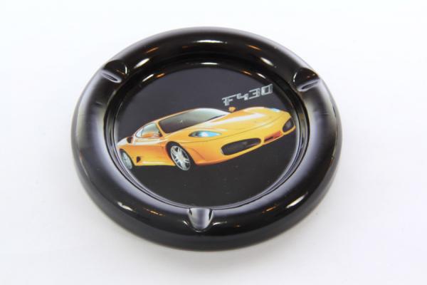 Пепельница для сигарет. Материал: металл. Пепельница имеет углубления для трех сигарет и оформлена изображением желтого автомобиля Феррари F430. Диаметр: 10,5 см. Высота: 1,3 см. Вес 25 г. Сделано в Китае