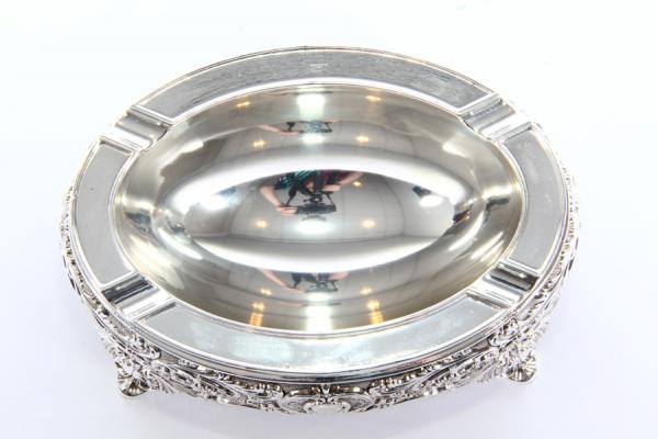 Пепельница для сигарет Rosenberg. Материал: сталь с никель-серебрянным напылением и лакировкой. Длина 15 см, ширина 11 см, высота 5.5 см. Сделано КНР