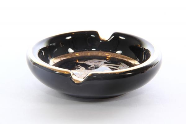 Пепельница для сигарет. На лицевой части изображение по греческим мотивам. Материал: фарфор. Диаметр=9,5 см, высота 1,5 см. Производитель: Porcelain manufacturing factory (Китай)