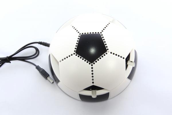 Бездымная пепельница для сигарет. Выполнена из пластика в виде футбольного мяча и оснащена вентилятором вытяжки дыма, который предназначен для рассеивания дыма от сигарет. Пепельница имеет углепластиковую негорючую вставку и работает от батареек и подключения к USB одновременно. Материал: пластик, металл. Размер пепельницы: 16 см х 9 см х 16 см. Вес 390 г. Работает от 2х батареек UM-2 (С, LR14, 343) USB интерфейс (батарейки в комплект не входят). Сделано в Китае
