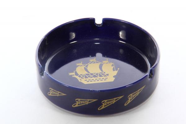Керамическая пепельница для сигарет с изображением кораблика Адмиралтейства и фирменной стрелкой Футбольного клуба \"Зенит\". Имеет углубления для трех сигарет. Пепельница является официальной продукцией Футбольного клуба \"Зенит\" Санкт-Петербурга. Диаметр 10 см, высота 3 см. Вес 190 г. Сделано в Китае.
