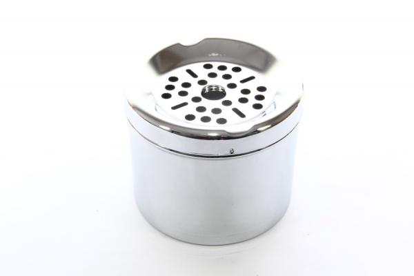 Металлическая пепельница для сигарет. На крышке пепельницы есть два специальных углубления для сигарет. Крышка содержит специальные отверстия, благодаря которым пепел без труда попадает в контейнер. Диаметр 9 см, высота 7,5 см. Вес 150 г. Изготовитель: S.Quire (Италия)