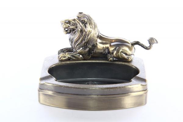Пепельница для сигарет со встроенной фигуркой-зажигалкой. Металл. Длина 11,5 см, ширина 8,5 высота 8 см. Сделано в Китае