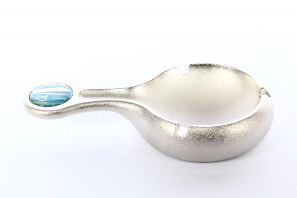 Пепельница для сигарет. Сделано из олова. Диаметр контейнера для пепла 8 см, длина с ручкой 15 см, высота 2,5 см