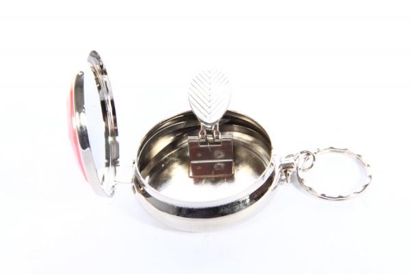 Карманная пепельница-брелок для сигарет. Металл, пластик. Диаметр 5 см, высота 2 см. Сделано в Китае