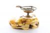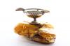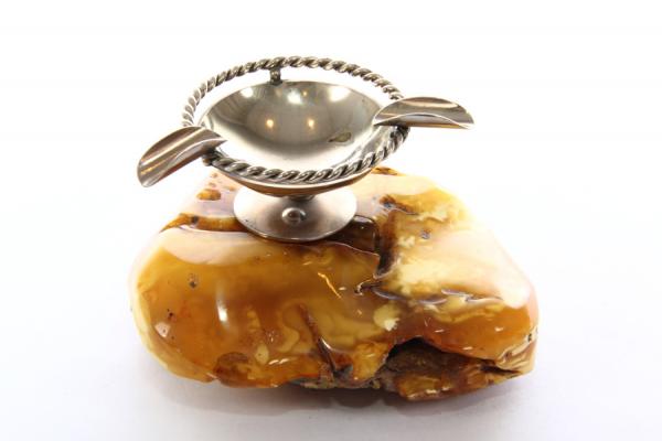 Пепельница для сигарет. Материал: металл, янтарь. Длина 11 см, высота 9 см, диаметр контейнера для пепла 6 см. Куплена в Польше в 1996 году