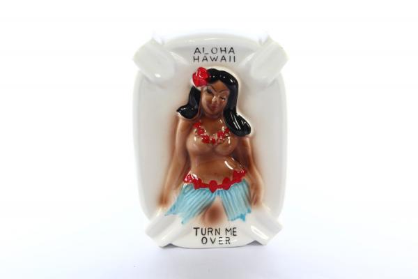 Двусторонняя пепельница Aloha Hawaii. Фарфор. Ручная роспись. Винтаж, 1970-е годы. Длина 17 см, ширина 12 см, высота 4 см. Сделано в Японии. Куплена в США