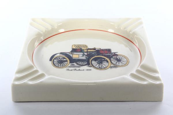 Керамическая пепельница First Packard Automobile 1899. Винтаж, 1950-е годы. Длина 20 см, ширина 20 см, высота 2,5 см. Сделано в США