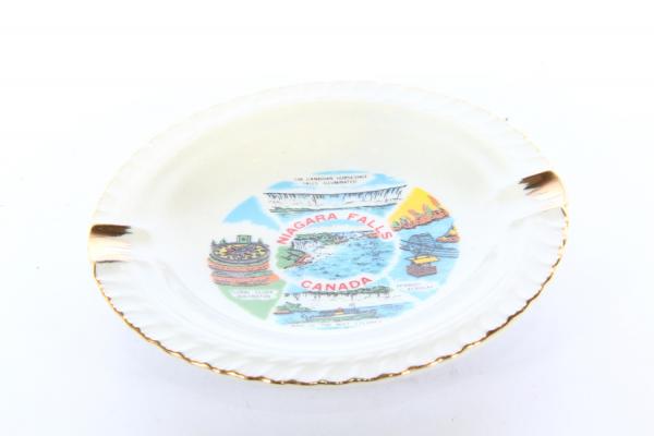 Сувенирная фарфоровая пепельница Niagara Falls Canada. Винтаж: 1970-е годы. Диаметр 12 см, высота 2 см. Сделано в Японии