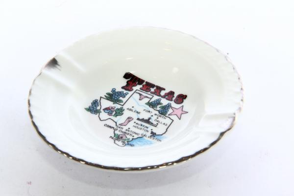 Сувенирная фарфоровая пепельница TEXAS. Винтаж: 1970-е годы. Диаметр 9 см, высота 1,5 см. Сделано в Японии