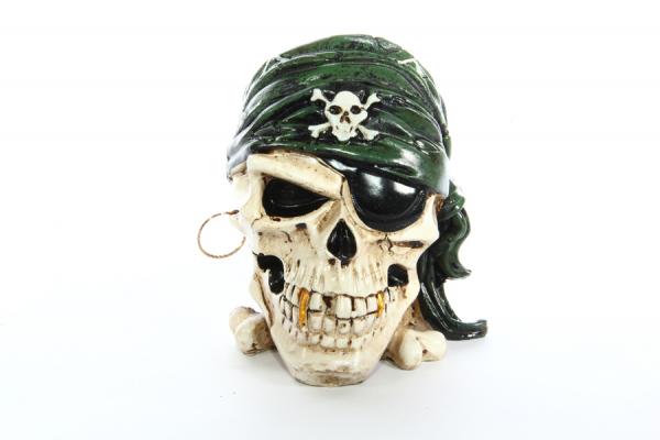 ЧЕРЕП ПИРАТА. Пепельница из полистоуна. Длина 11 см, ширина 11 см, высота 12 см. Сделано в Китае
