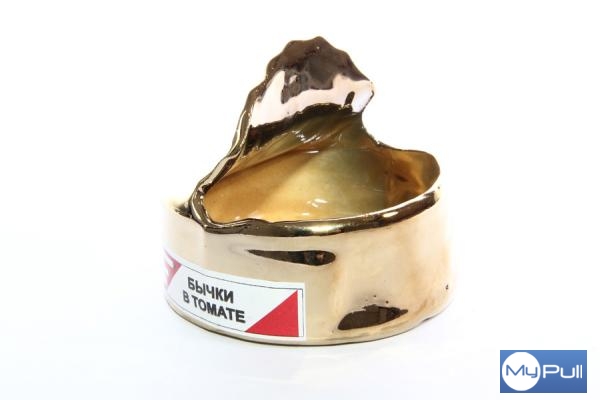 Керамическая пепельница. Выполнена в виде открытой консервной банки. Диаметр 10 см.