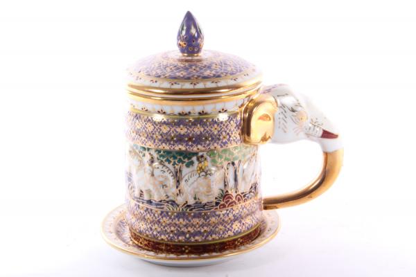 Фарфоровая кружка с крышкой блюдцем. Изготовлена в Тайланде в 2009 г.