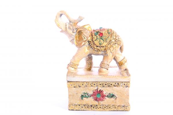 Шкатулка из полимерного материала с фигуркой слона. Изготовлена в Китае