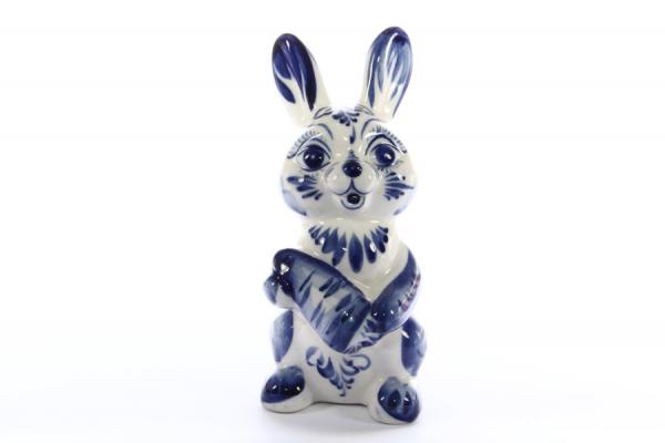 Заяц с морковкой. Фарфоровая фигурка. Гжель. Сделано в России