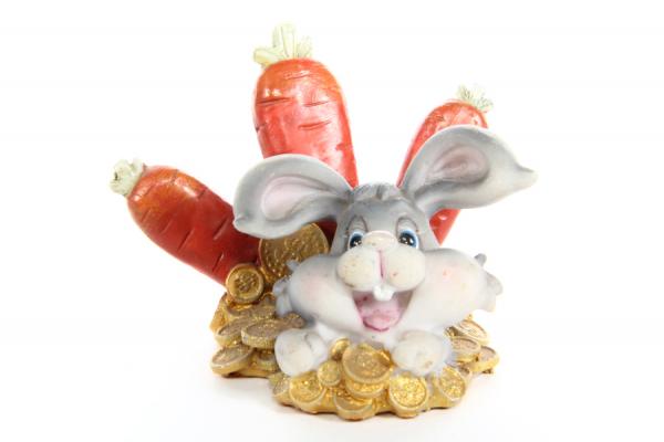 Заяц с морковкой. Статуэтка из полимерного материала. Изготовлена в Китае
