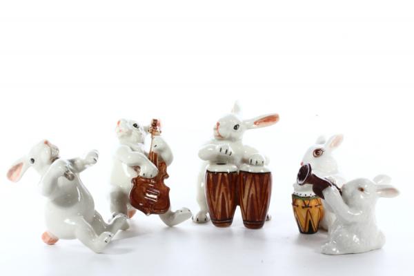 Зайцы-музыканты. Керамические фигурки. Изготовлены в Тайланде