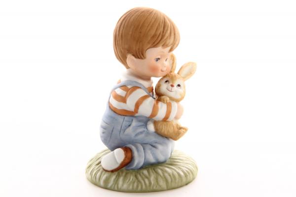 Мальчик с зайчонком. Фарфоровая статуэтка. Изготовлена в Тайване в 1990-х годах