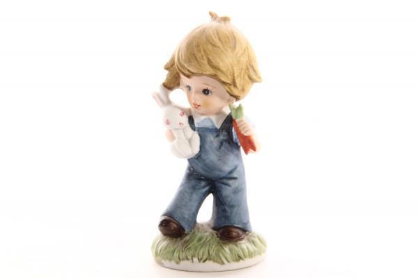 Мальчик с зайчонком. Фарфоровая статуэтка. Изготовлена в Тайване в 1990-х годах