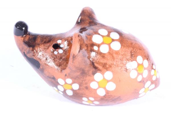 Ежик. Керамическая фигурка. Ручная работа. Материалы: красная глина, ангобы, стекловидная глазурь, краски по керамике. Автор: Вячеслав Костюченко (Москва). 2015 год