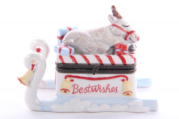 Ослик на санях. Фарфоровая шкатулка. Изготовлена на фабрике Villeroy & Boch (Германия)