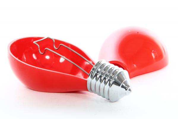 Пепельница для сигарет. Выполнена в виде лампочки зеленого цвета. Пепельница легко открывается и закрывается, внутри пепельницы есть одна подставка для сигареты. Материал: пластик, металл. Размеры: 13,5 см х 8 см х 7 см. Вес: 165 г. Сделано в Китае
