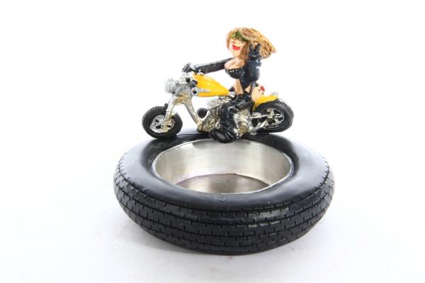 БАЙКЕРША. Пепельница для сигарет из полистоуна. Диаметр 10 см, высота 7 см. Сделано в КНР