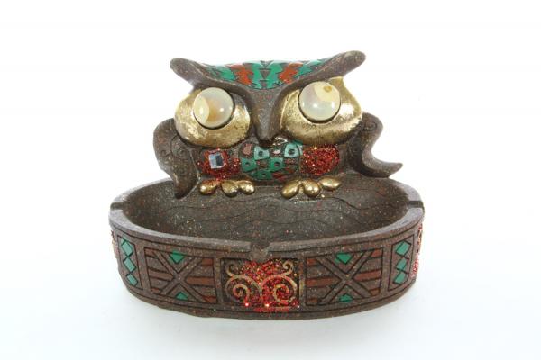 СОВА. Пепельница из полистоуна. Длина 15 см, ширина 9 см, высота 9 см. Сделано в Китае