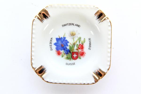 Фарфоровая пепельница для сигарет. Длина 8 см, ширина 8 см, высота 1,5 см. Сувенир из Цюриха