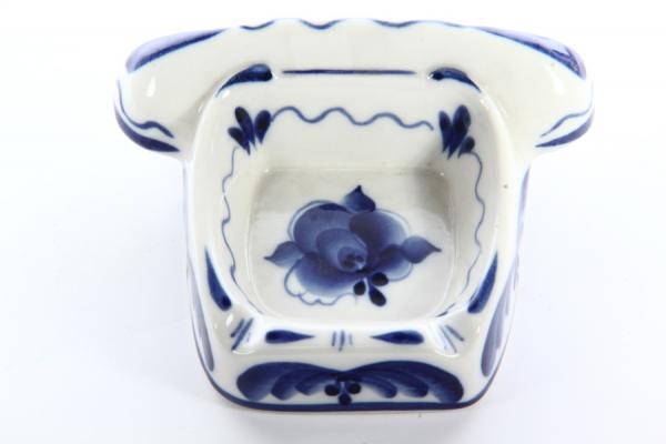 Фарфоровая пепельница. Авторская работа Федотова и Гатулиной (Гжель). Длина 12 см, ширина 11 см, высота 3,5 см. Сделано в России