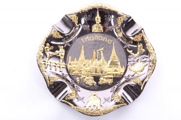 Сувенирная металлическая пепельница. Диаметр 15 см, высота 1,5 см. Изготовлена в Тайланде