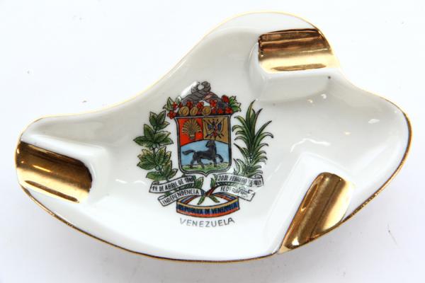 Фарфоровая пепельница. Длина 12 см, ширина 7,5 см, высота 1,5 см. На днище имеется клеймо RW 16. Сувенир из Венесуэлы