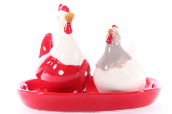 Керамические солонка и перечница на подставке. Сделано в Китае