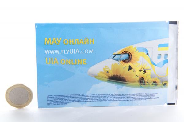 Гигиеническая салфетка из самолета Международных авиалиний Украины. 2013 год
