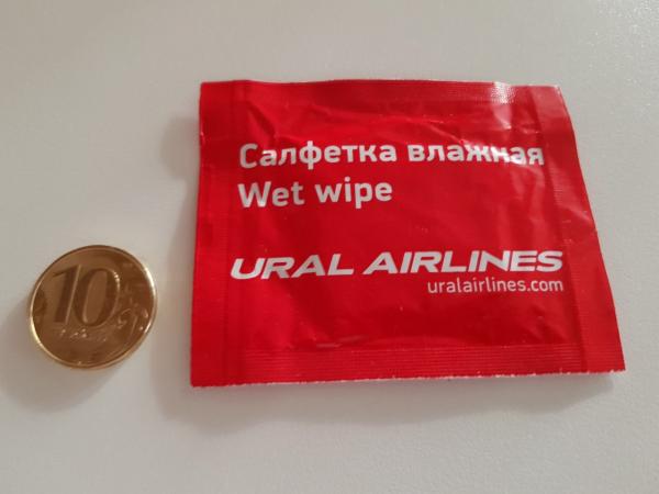 Гигиеническая салфетка из самолета компании URAL airline. 2016 год